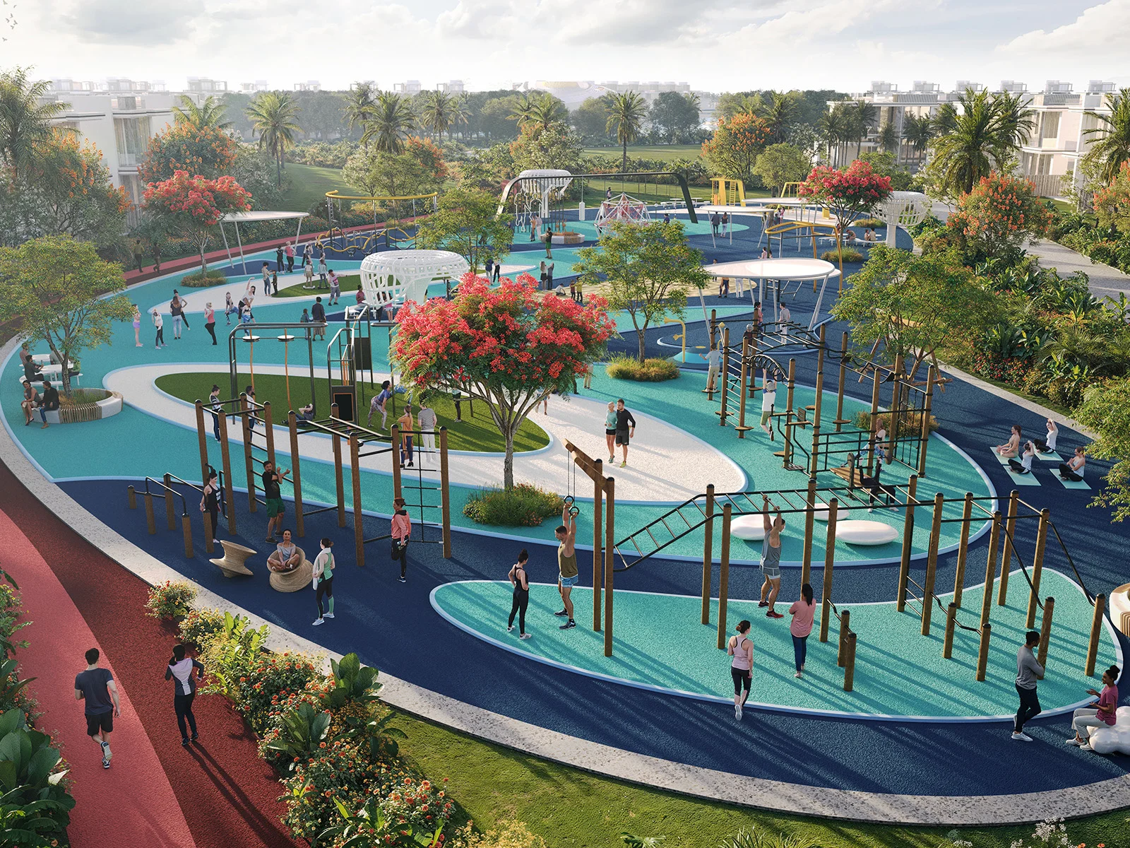 Enjoy townhouses and villas surrounded by lagoons, jungle trails, aqua parks, and serene island-inspired landscapes.